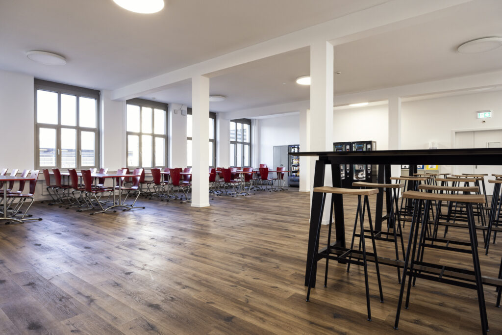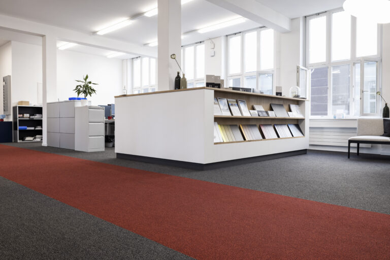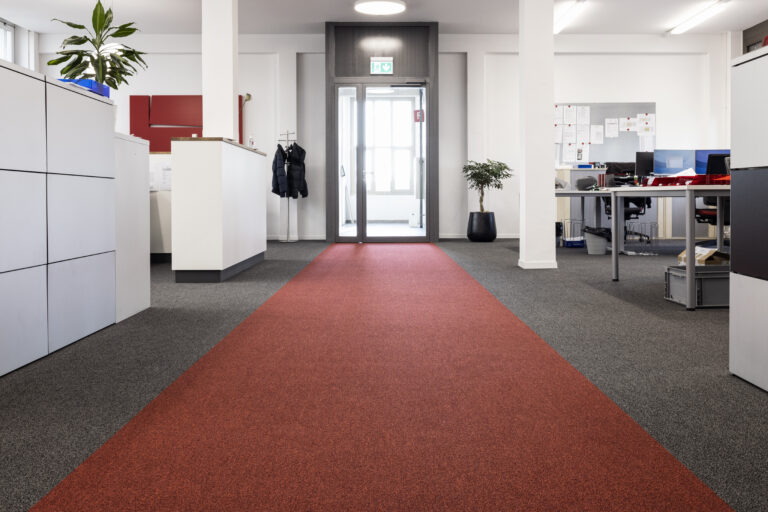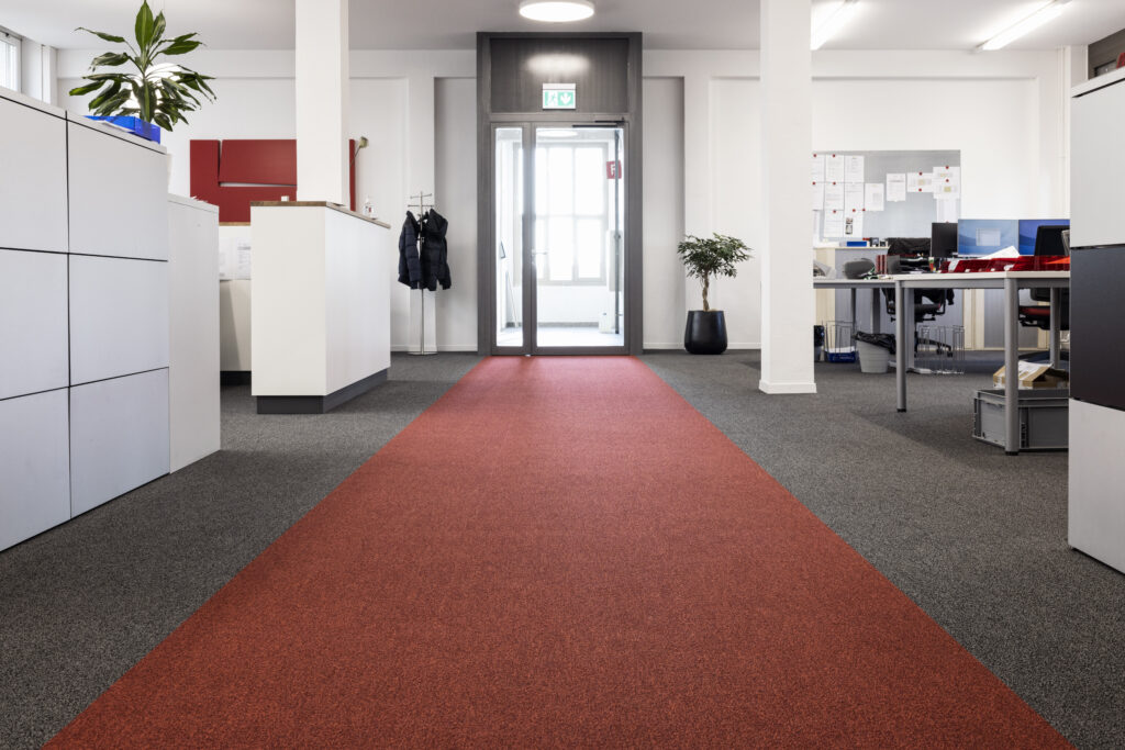 Das Gebäude aus dem Jahr 1943 wies mehrere Boden-Untergründe auf, die Zuffelato & Wirrer entfernen musste. Anschliessend wurden die Bodenbeläge für den Untergrund fachmännisch aufbereitet und die Teppichplatten Eck auf Eck verlegt. Weitere Verlegemuster wie Schachbrett oder Fischgrat sind ebenfalls möglich.