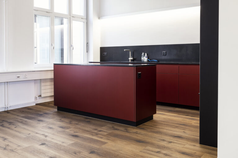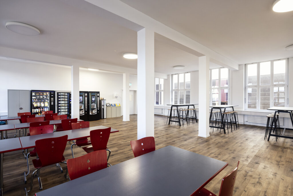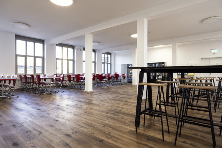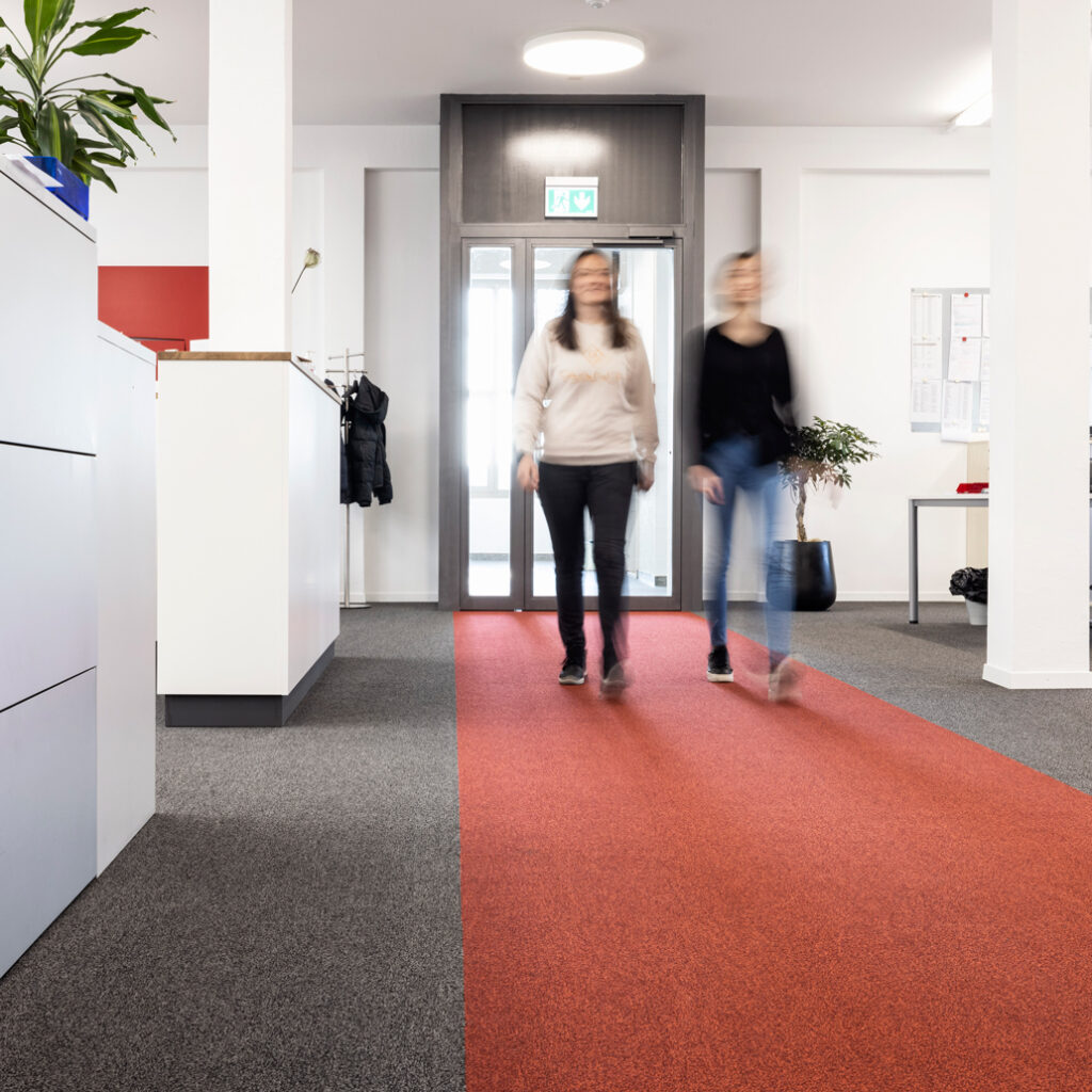 Im Rahmen der Renovation der Büroräume der BWB-Altenrhein AG hat die Zuffelato & Wirrer AG zwei Grossraumbüros, vier Sitzungszimmer und fünf kleinere Büros mit Teppichplatten ausgestattet. Für die Teppichplatten in den Büros hat das Unternehmen den Farbton «Basalt» gewählt. Im Erdgeschoss des Bürogebäudes befindet sich der Aufenthaltsraum. Da dort verschmutzte Arbeitsschuhe ein und aus gehen, muss der Boden strapazierfähig und feuchtigkeitsbeständig sein. Die Wahl der BWB-Altenrhein AG fiel hier auf einen Vinylbelag.