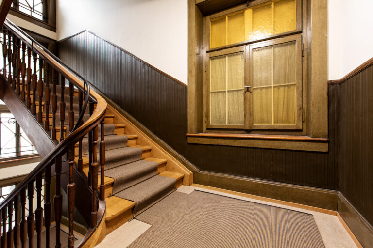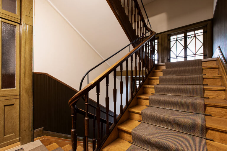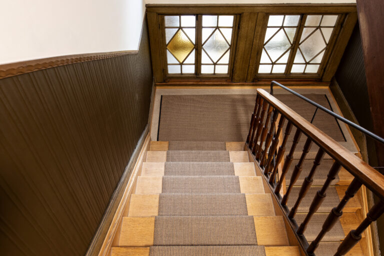 Mitten in der Stadt St.Gallen steht dieses Mehrfamilienhaus mit vier Stockwerken. Sein Treppenhaus hat einer Totalsanierung bedurft, mit welcher die Zuffelato & Wirrer AG beauftragt worden ist. Auf den Podesten zwischen den Stockwerken hat sie umweltfreundliches Linol verlegt. Das Eichenholz des Treppenlaufs hat eine leichte Auffrischung erfahren, danach haben die Fachleute einen Sisalteppich wasserfallartig über Stufen und Podeste gelegt. Dieser Teppich ist extrem robust, darüber hinaus antistatisch und schalldämmend. Um die Brandschutzwerte einzuhalten, hat er eine spezielle Beschichtung erhalten. Da die Naturfaser Sisal Feuchtigkeit aufnehmen und abgeben kann, trägt der Teppich zusammen mit