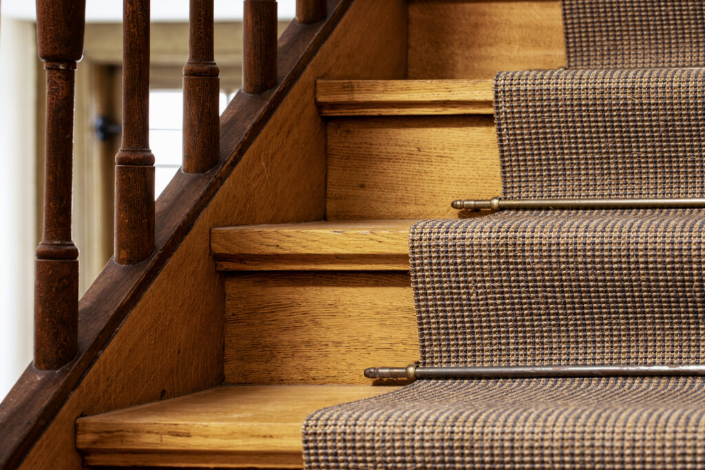 dem Holz der Treppe zum gesunden Raumklima bei. Im Eingangsbereich absorbiert eine Coral-Brush-Schmutzschleuse wirkungsvoll Feuchtigkeit und Dreck.